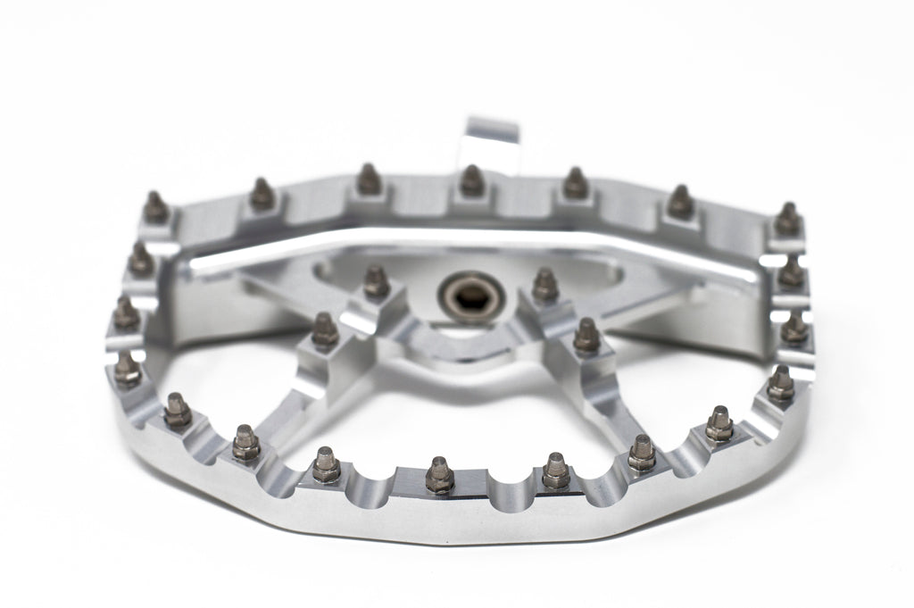 Nos planches de plancher MX Mini sont fabriquées à partir d'un alliage d'aluminium 6061 T6 par usinage CNC. Ces matériaux sont jusqu'à 50 % plus légers que la plupart des repose-pieds d'origine. Le traitement de surface par anodisation couleur contribue à améliorer la résistance à la corrosion et donne un aspect personnalisé badass. La rotation complète des repose-pieds à 360 degrés rend ces repose-pieds parfaits pour quel que soit le style de conduite que vous préférez. La surface dentelée confortable en D vous offre une zone plus large pour vos pieds et offre une bonne adhérence sur le bas de votre chaussure. Toutes les fixations sont fabriquées en acier inoxydable pour résister à l'usure et à la corrosion. Ces nouveaux mini-planchers mesurent 4,75 pouces x 3,5 pouces.
