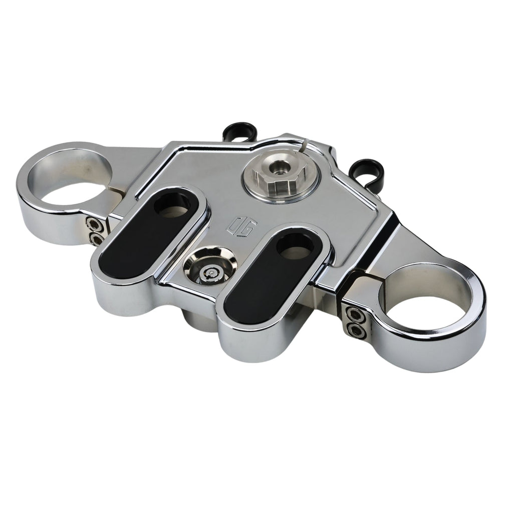 Notre té de fourche supérieur OG pour les modèles Harley-Davidson CVO Touring 2023 et suivants vous permettra de régler vos rehausseurs exactement où vous le souhaitez grâce à trois options de montage : d'origine, +1'' et +2'' en retrait vers le pilote (les adaptateurs +1" sont vendus séparément).