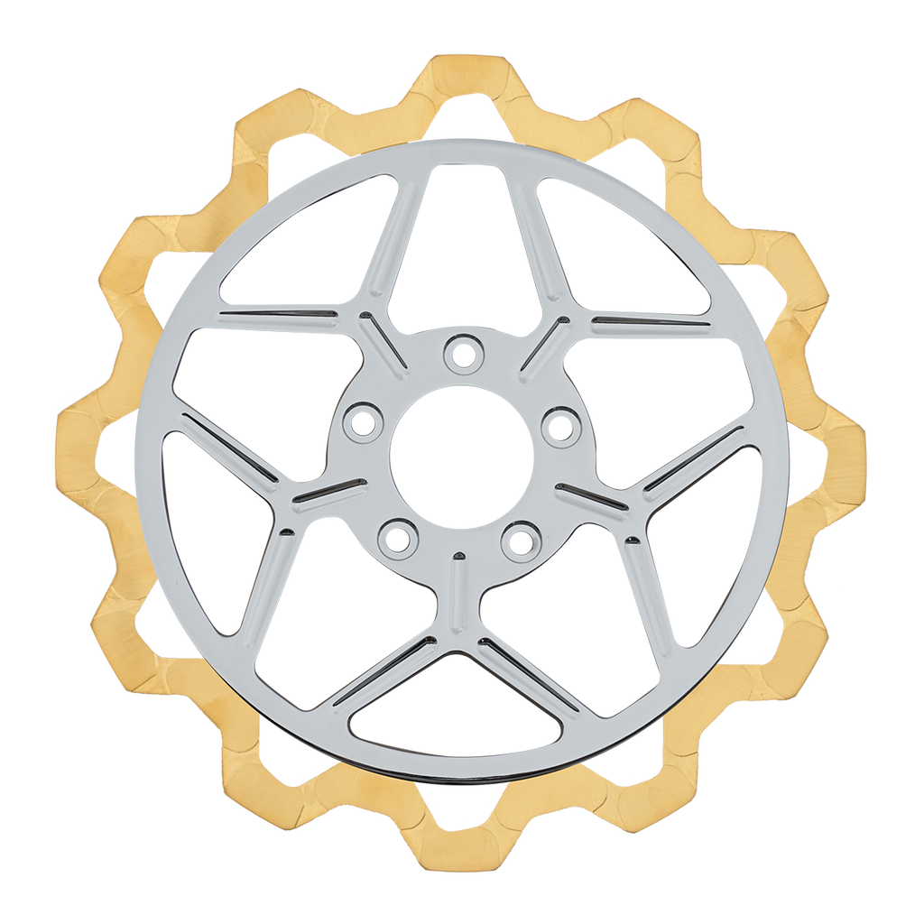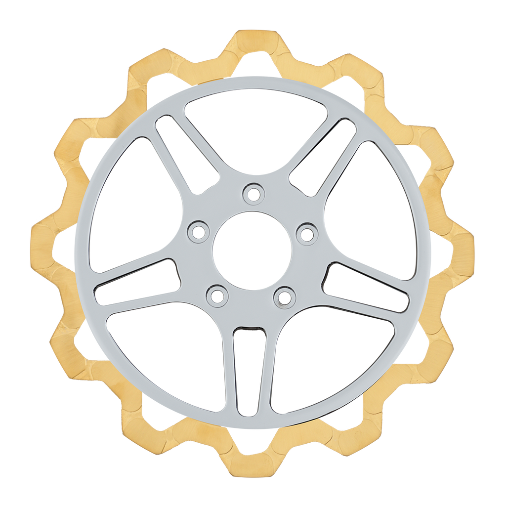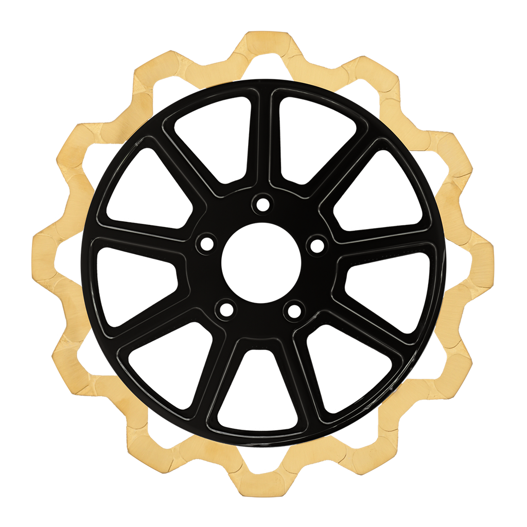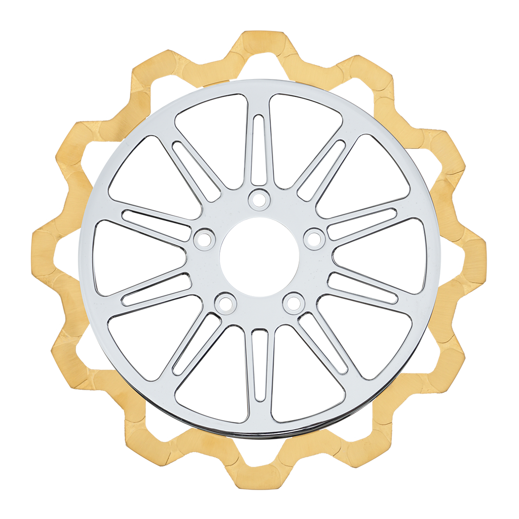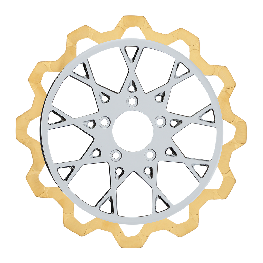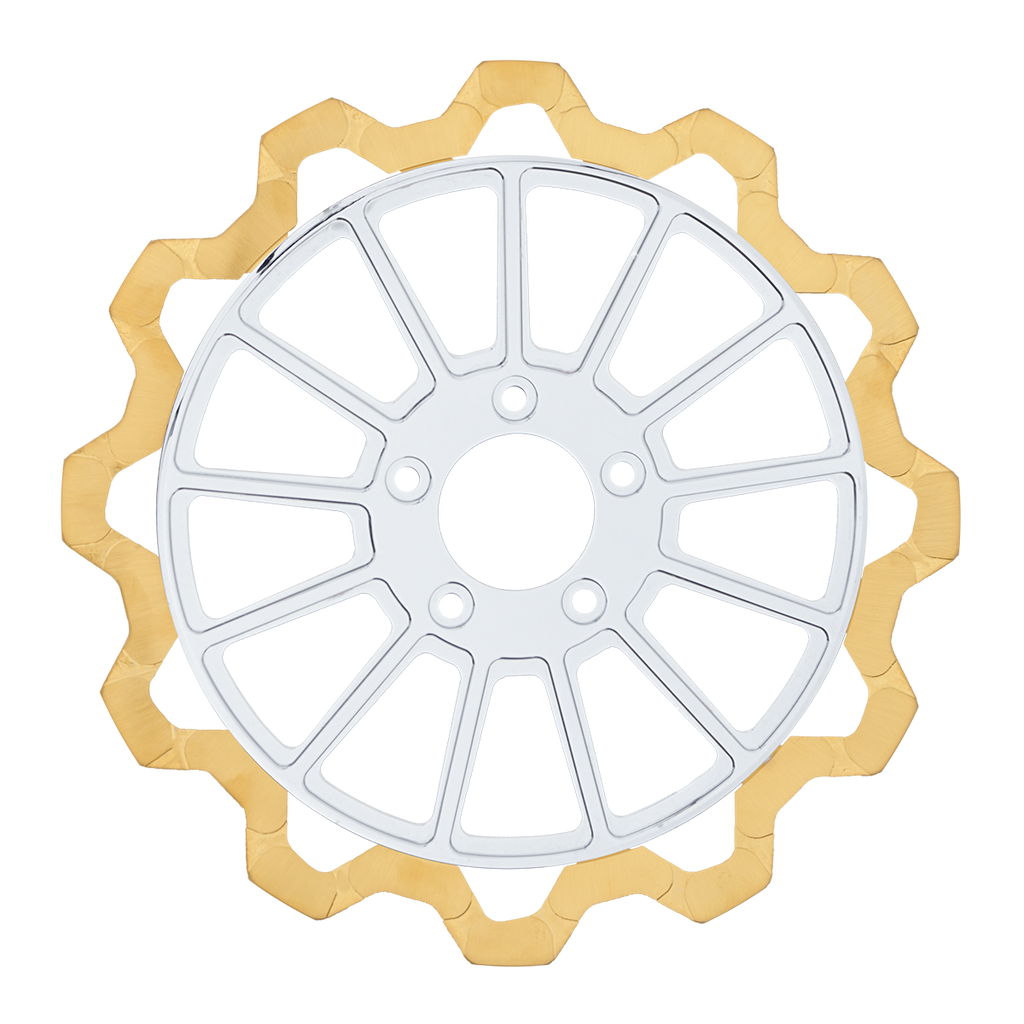 For riders who prioritize both performance and aesthetics, our Gold+ brake compound is the ideal choice. Designed to prioritize braking effectiveness, this compound removes the finish from areas that engage the brake pads, while still delivering exceptional friction rating. This pad leaves a nice contrast look of machine finish and the original gold or black color in the gas slots of the rotor.