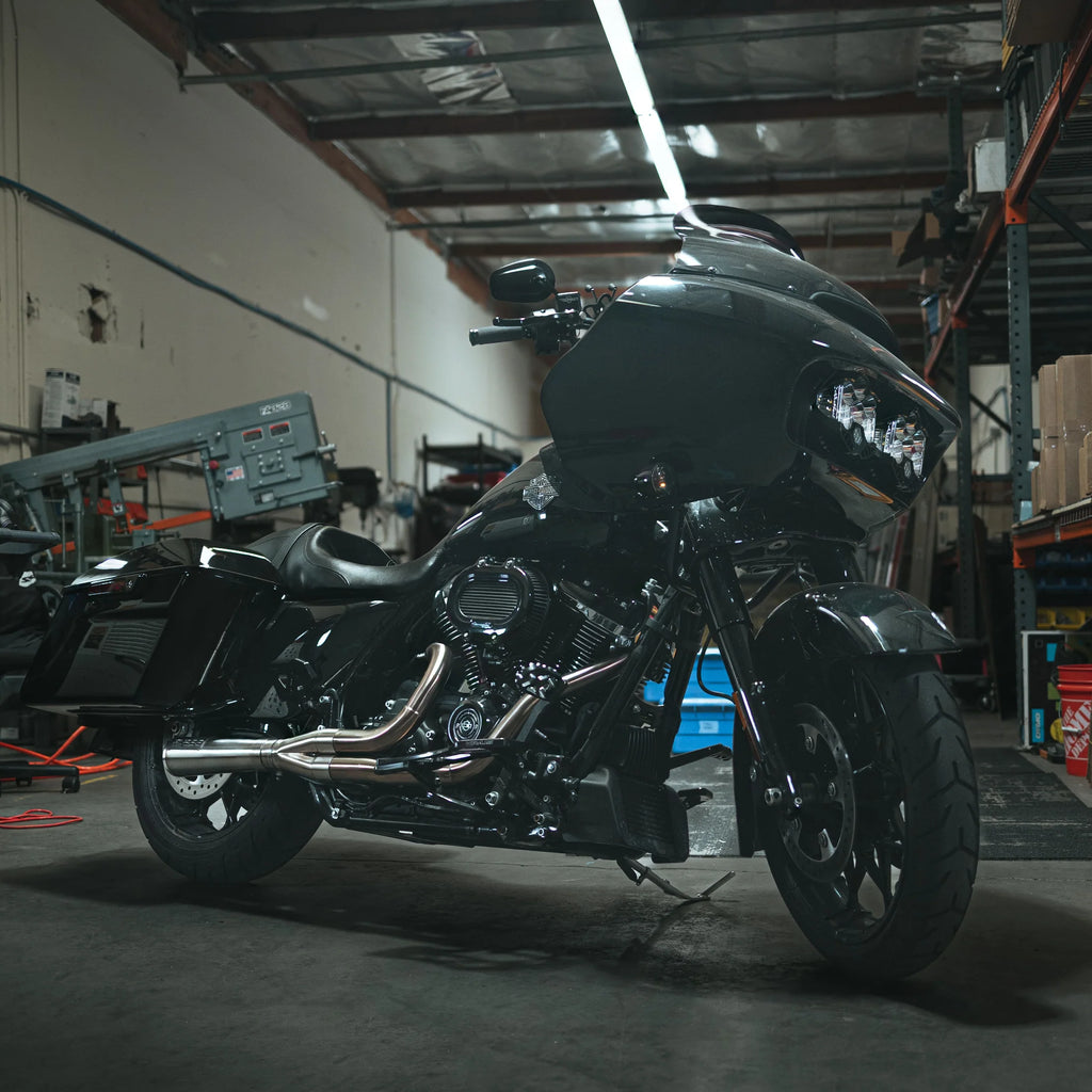 All of our exhausts are constructed from the highest quality 304 stainless steel 16 gauge tubing to ensure that you can run your motorcycle like it was meant to be run. All of the sections of our modular exhaust system are fabricated in our California shop and then carefully assembled by hand and welded by experts to ensure proper fitment. By assembling our exhausts in a modular way, we can reduce stress on the metal which in turn eliminates cracking and gives you an overall more durable product.