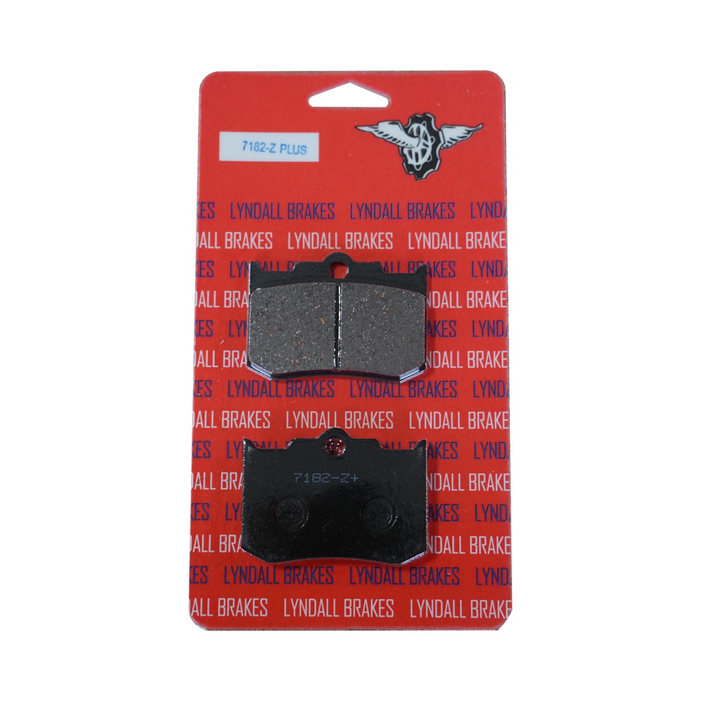 This is a great pad for putting on a stock Harley. Utilizing a specially formulated aramid compound, this tried and true brake pad will deliver 5% more stopping power than stock pads with Zero dust or noise. 30% cooler and 50% lighter than sintered pads. Note: If you want to protect the black finish on your Lyndall rotor, you must use our Z plus brake pads. (These also work great with polished rotors)