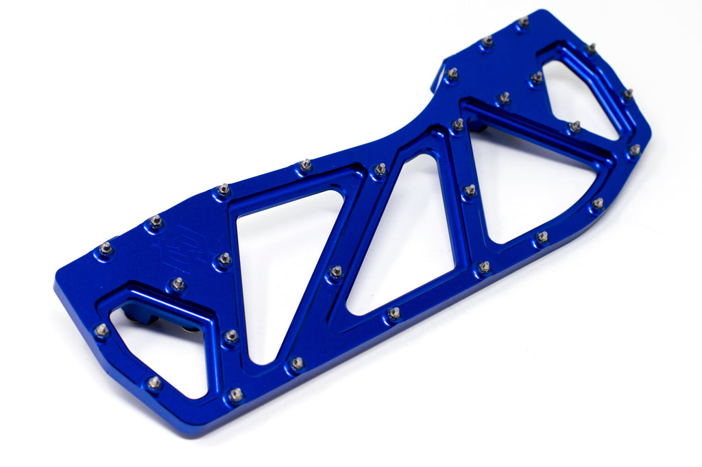 We are super excited to introduce our new Bagger MX Floorboards. These bad boys are made from 6061 T6 alloy aluminum by CNC machining. These materials are up to 50% Lighter than most stock floorboards. Color anodizing surface treatment helps improve the corrosion resistance and gives a badass custom look. The comfortable serrated foot surface area gives you a wider area for your feet and provide a good bite on the bottom of your shoe. All fastener are made from stainless steel for wear-resisting and resisting corrosion. Our Floorboards measure in at 12 x 4.5 inch giving you a large area for optimum comfort.