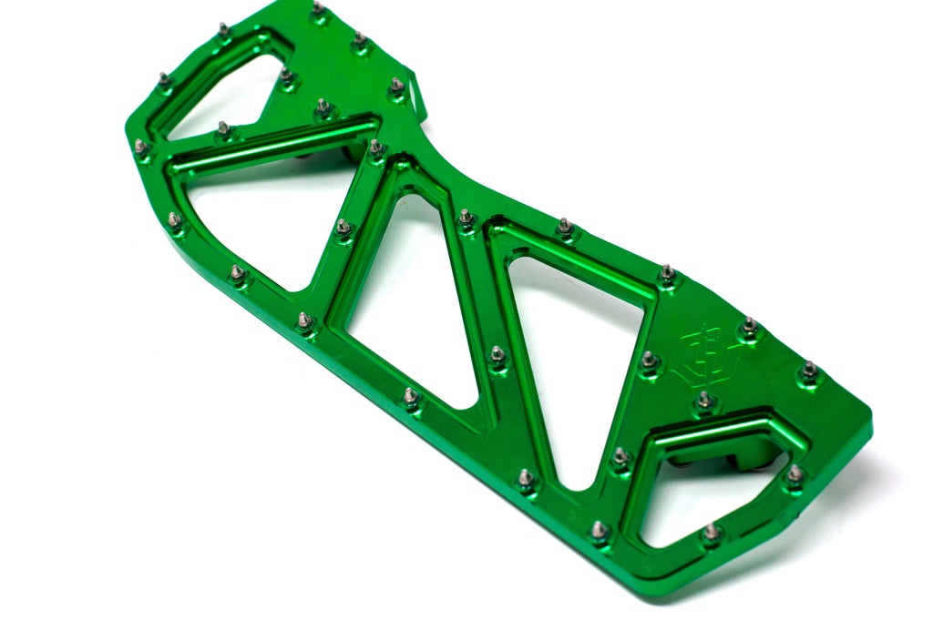 We are super excited to introduce our new Bagger MX Floorboards. These bad boys are made from 6061 T6 alloy aluminum by CNC machining. These materials are up to 50% Lighter than most stock floorboards. Color anodizing surface treatment helps improve the corrosion resistance and gives a badass custom look. The comfortable serrated foot surface area gives you a wider area for your feet and provide a good bite on the bottom of your shoe. All fastener are made from stainless steel for wear-resisting and resisting corrosion. Our Floorboards measure in at 12 x 4.5 inch giving you a large area for optimum comfort.