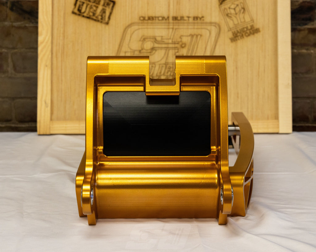 Your new swingarm will arrive in style, packed in a customized wooden box. To make it uniquely yours, add your name below when placing your order.